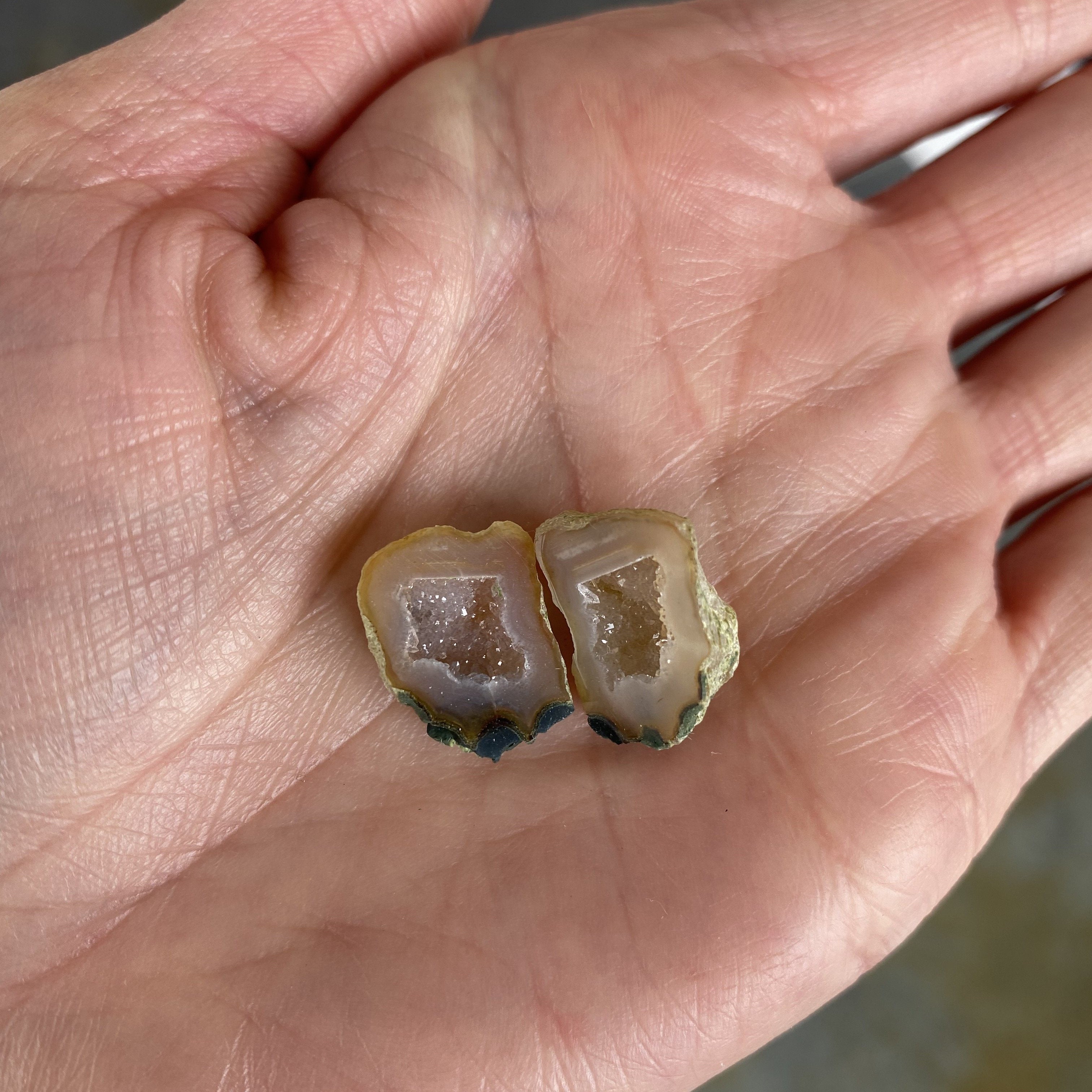 Our BFF Geode Necklaces are back! Each geode is sliced in half and when placed back together, they are made whole again. Keep one half for yourself and give the other half to that special someone in your life. We created these sentimental pieces as a token of love you have for that person that you can't always be with but you can have a daily reminder of each other when you wear them. We carefully handpicked each & every geode to make sure you get the perfect pair. Remember you get BOTH necklaces.