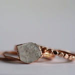 Each stone ring is made using a unique process called electroforming. We take a simple hammered copper band (or sterling silver band with the solid silver core option) and transform it into a one of a kind piece that is sure to catch the eyes and capture the hearts of everyone that sees it. We take special care in hand selecting and placing each stone on the band. This is the most critical step because it determines the final design of the ring. The ring is then placed in a solution for up to 14 hours while the metal (pure copper or pure silver depending on which option you choose) builds up and forms all around the stones. We are constantly checking on them to be sure they are forming exactly as they should be. This is so exciting to watch because each one forms in its own unique way. They are then tumbled to perfection and plated with the thickest and highest quality plating possible. This process is similar to the electroforming process. When the plating is complete, they are sealed and then sealed again to make sure they will stay as good as new with everyday wear. See our Care Instructions on how to keep your precious gems in tip top shape.
