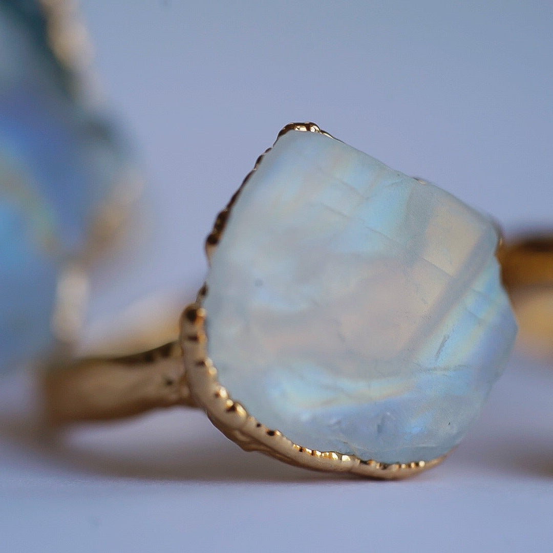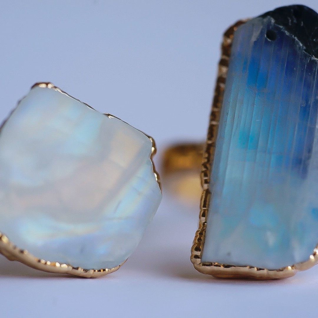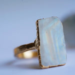 Our statement style rings are sure to make a statement everywhere you go. Go big or go home, right? The Moonstone Statement Rings are adorned with a larger, more bold high quality natural Moonstone. They look beautiful when you're playing dress up or just hangin' around keeping it casual. You'll have people coming out of the wood works to admire that stunning rainbow flash every time you wear it.