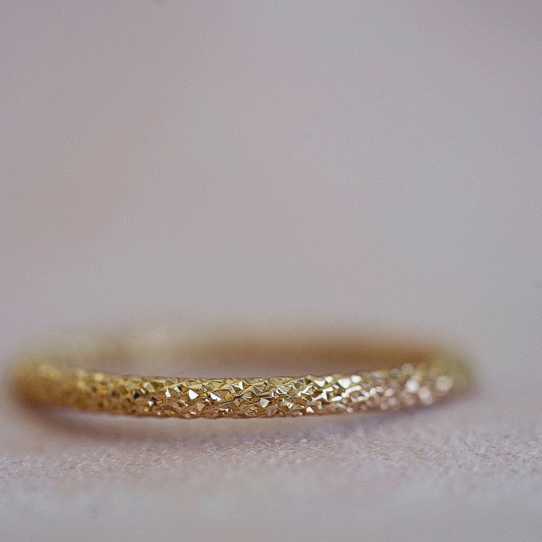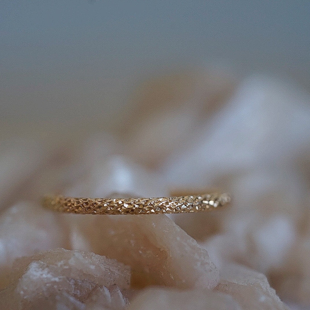 Pair it with your stone rings, collection of stacking rings or wear it all by itself. No matter how you decide to wear it, our Glitter Band is a treat! With it's sparkly texture & amazing quality, it is sure to be an eye catcher. These rings are perfect for mixing & matching, and adding extra thickness & sparkle. Each ring is individually cut, soldered, and polished for a beautiful hand-crafted, high-quality ring.- These are 1.8mm