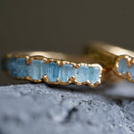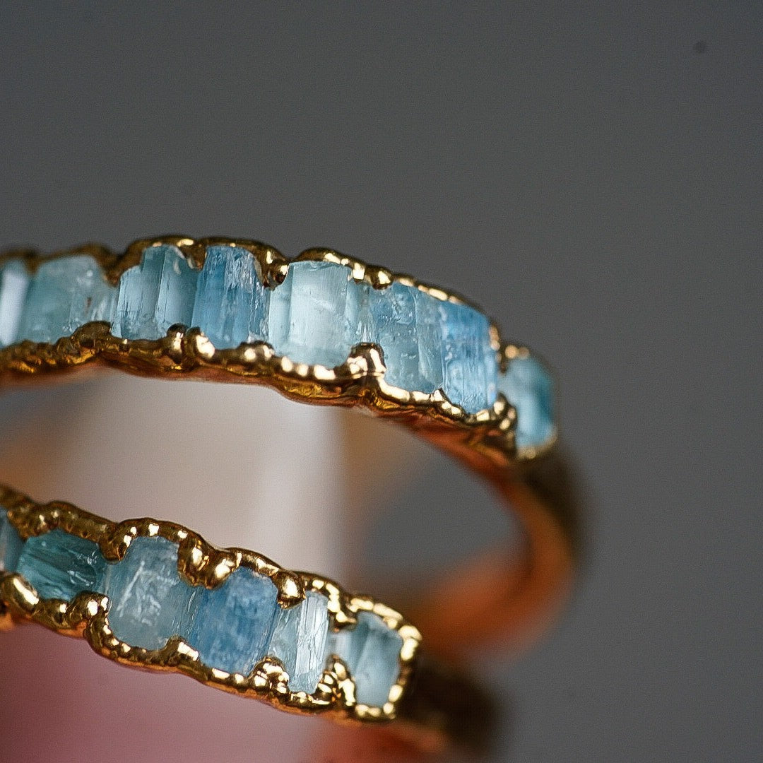 The newest addition to the Mini Multi Stone Collection is here! The most GORGEOUS Aquamarine! This piece is adorned with several high quality Aquamarine stones aligned in a row for a more minimal design. Looks beautiful paired with other pieces in the collection, add on bands, your own sentimental pieces, or all by itself.