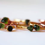 Each stone ring is made using a unique process called electroforming. We take a simple hammered copper band (or sterling silver band with the solid silver core option) and transform it into a one of a kind piece that is sure to catch the eyes and capture the hearts of everyone that sees it. We take special care in hand selecting and placing each stone on the band. This is the most critical step because it determines the final design of the ring. The ring is then placed in a solution for up to 14 hours while the metal (pure copper or pure silver depending on which option you choose) builds up and forms all around the stones. We are constantly checking on them to be sure they are forming exactly as they should be. This is so exciting to watch because each one forms in its own unique way. They are then tumbled to perfection and plated with the thickest and highest quality plating possible. This process is similar to the electroforming process. When the plating is complete, they are sealed and then sealed again to make sure they will stay as good as new with everyday wear. See our Care Instructions on how to keep your precious gems in tip top shape.