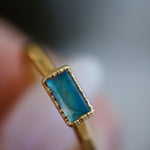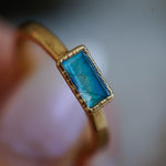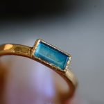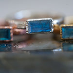 - A single baguette shaped stone (approx 8mm long) is set on a simple hammered band in the metal of your choice
