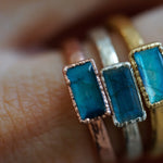 Each stone ring is made using a unique process called electroforming. We take a simple hammered copper band (or sterling silver band with the solid silver core option) and transform it into a one of a kind piece that is sure to catch the eyes and capture the hearts of everyone that sees it. We take special care in hand selecting and placing each stone on the band. This is the most critical step because it determines the final design of the ring. The ring is then placed in a solution for up to 14 hours while the metal (pure copper or pure silver depending on which option you choose) builds up and forms all around the stones. We are constantly checking on them to be sure they are forming exactly as they should be. This is so exciting to watch because each one forms in its own unique way. They are then tumbled to perfection and plated with the thickest and highest quality plating possible. This process is similar to the electroforming process. When the plating is complete, they are sealed and then sealed again to make sure they will stay as good as new with everyday wear. See our Care Instructions on how to keep your precious gems in tip top shape.