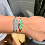 Each bracelet is handcrafted using a unique process called electroforming. We start with a gorgeous, hand-selected stone and transform it into a truly one-of-a-kind piece.