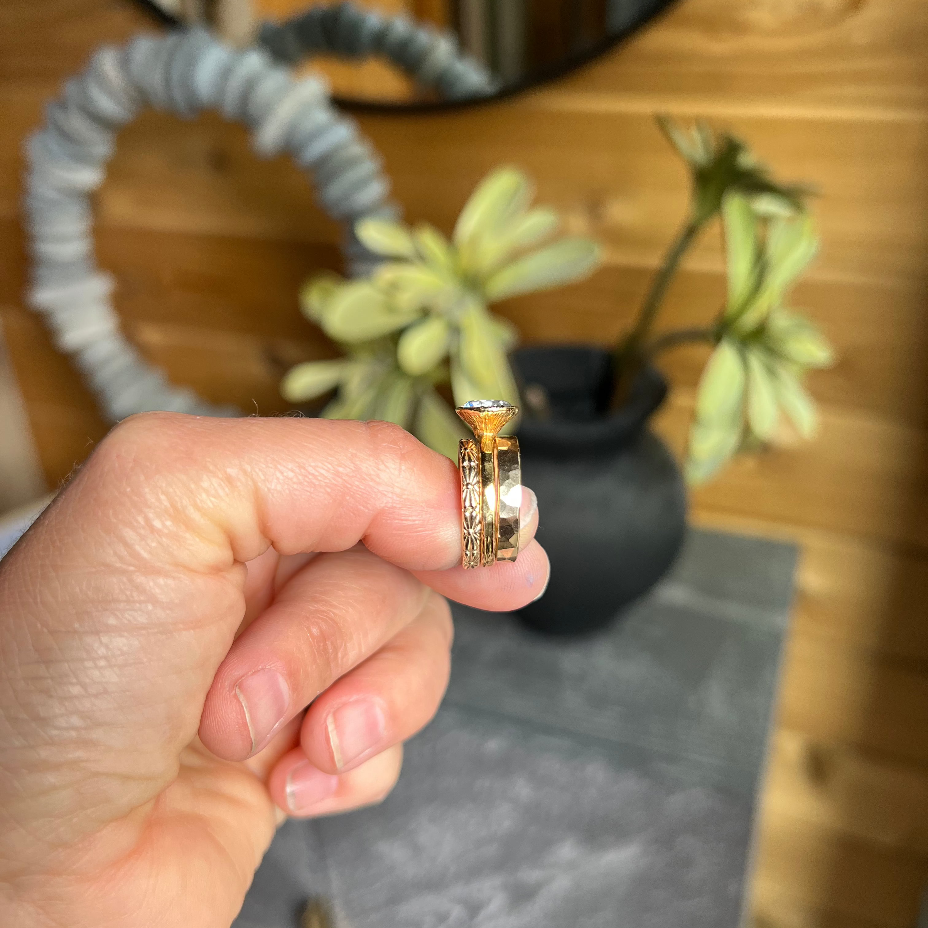 Sleek with just the right amount of texture, our 3mm Hammered Band offers a modern yet organic feel that’s effortlessly versatile. Each band is hand-hammered to create a soft, light-catching finish—no two are exactly alike.